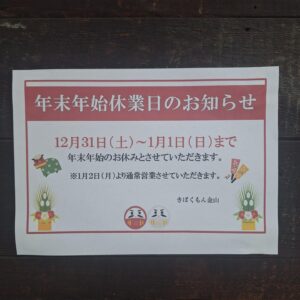 年始は1月2日からの営業とさせていただきます。