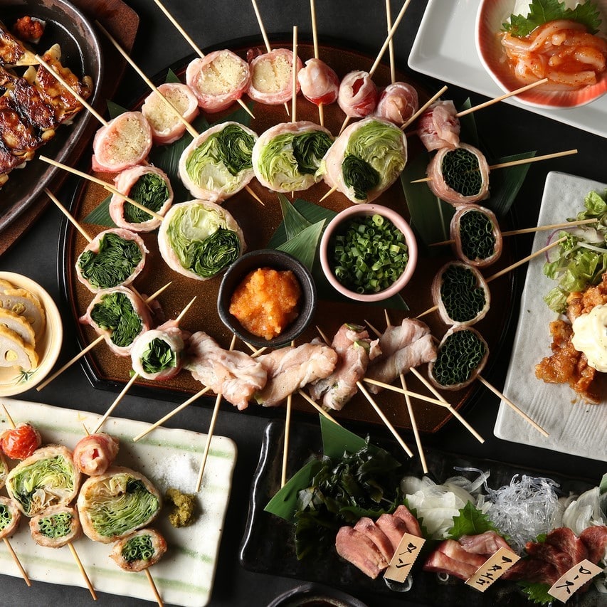 4月宴会【野菜巻串とまかない串おまかせ10種コース】飲み放題2時間付き 全7品 5000円
