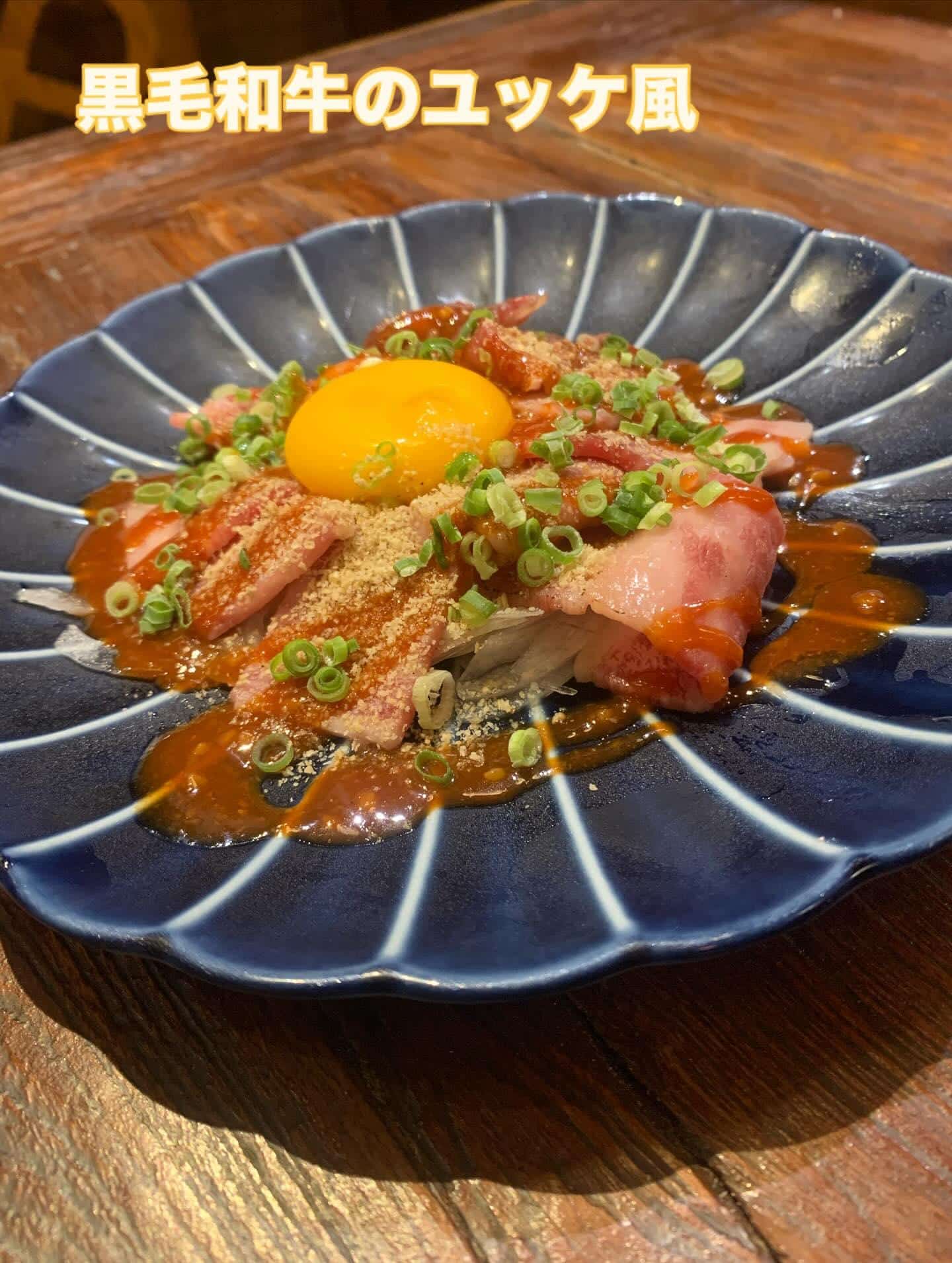 甘辛いタレとまろやかなたまごを黒毛和牛に絡めて食べていただく贅沢な逸品です!!